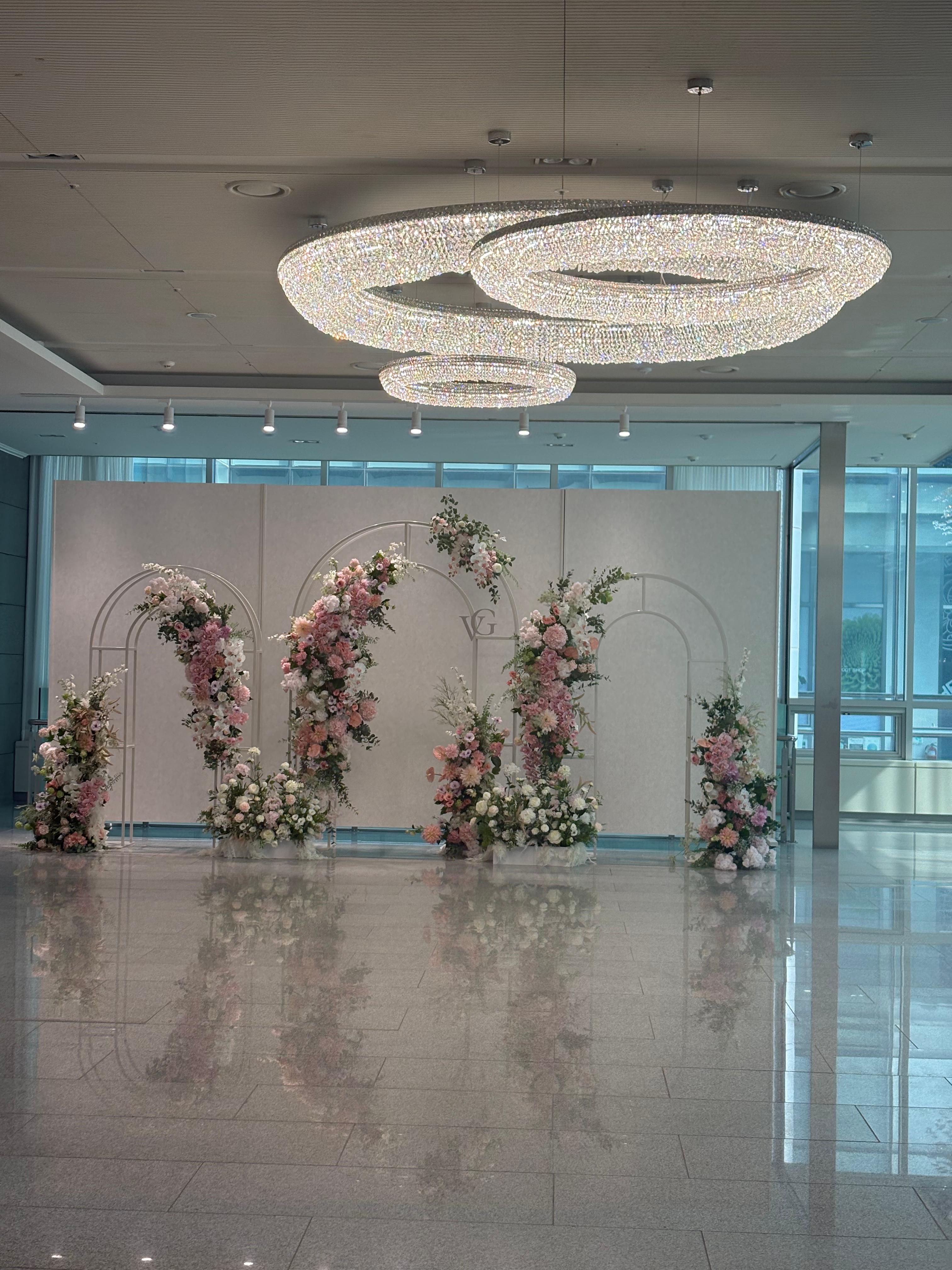 6대나 있는 엘리베이터에서 내리면 처음 보는 곳 (혼주, 신랑이 손님 맞이하는 장소)